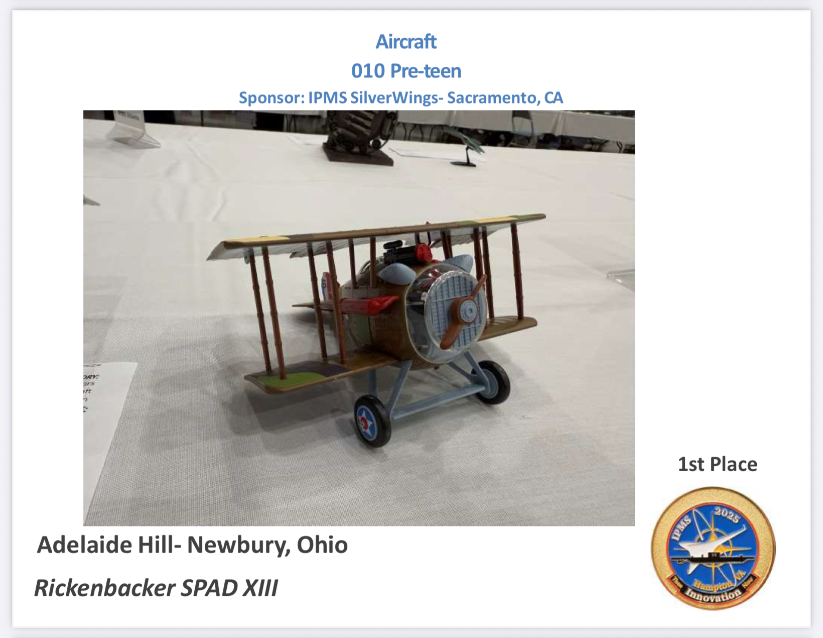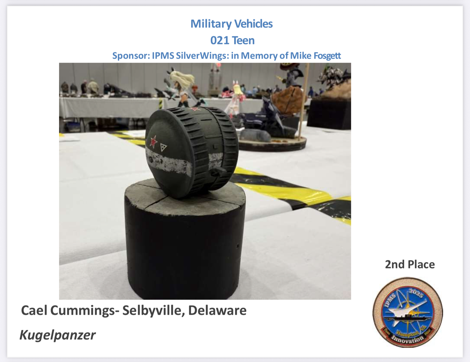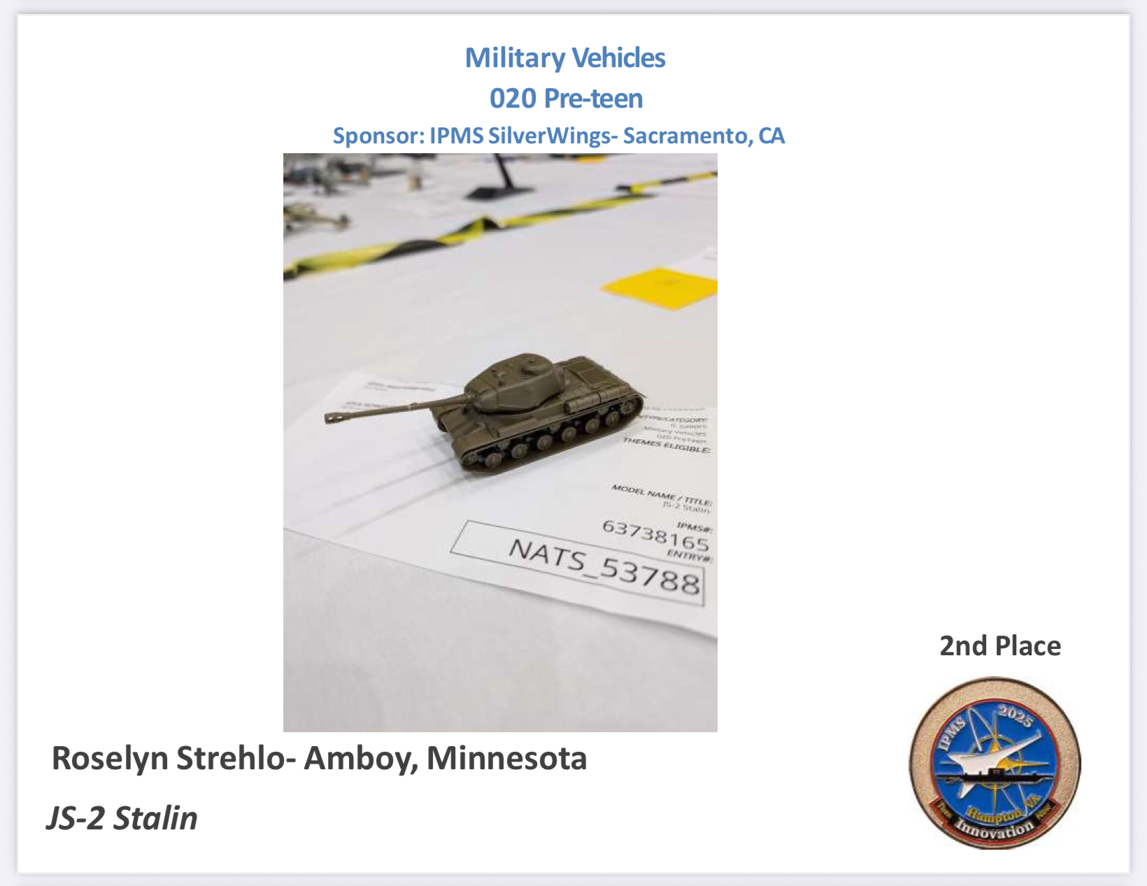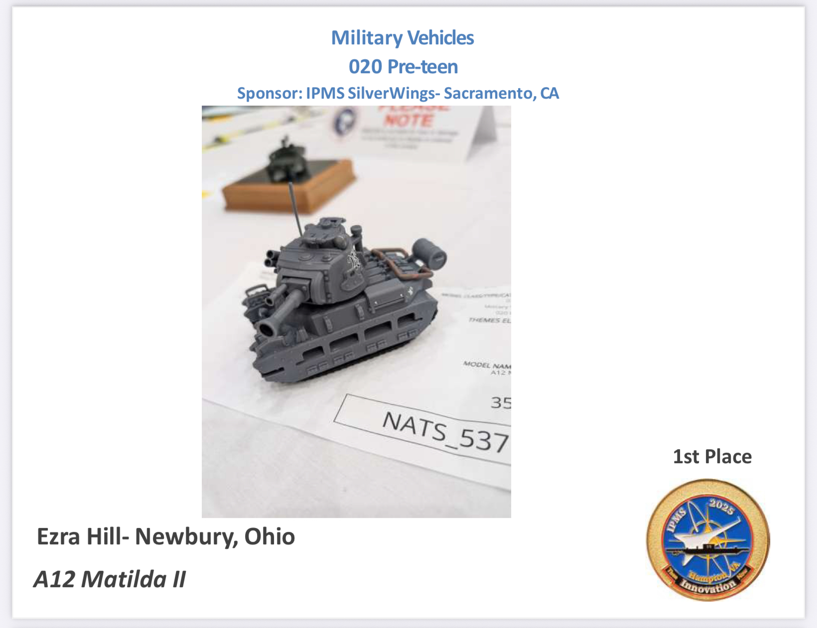 This year, IPMS SilverWings proudly sponsored three categories – Juniors: Pre-teen Aircraft, Pre-Teen Military Vehicles, and Military Vehicles -in memory of our friend and fellow modeler, Mike Fosgett. Mike’s passion for the hobby and his dedication to our club continue to inspire us, and it was an honor to celebrate his legacy in this way.